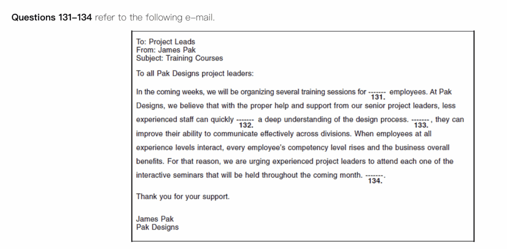 Part 6 從 12 題增加為 16 題,舊制的 Part 6 只有單字或片語填空,新制增加了「整句填空」,題目會給你四個完整的句子選項,你要選出最適合填入空格的那一句。